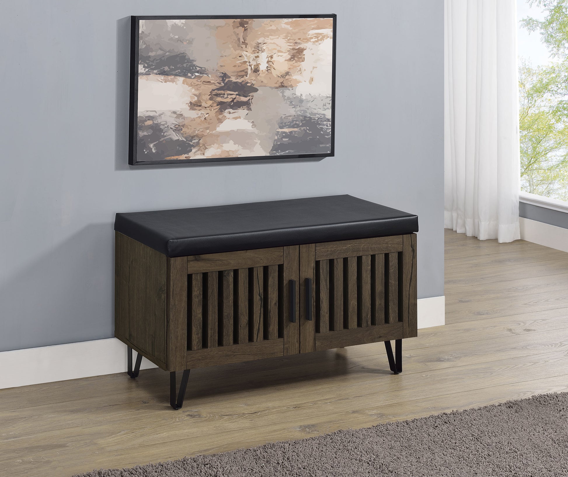 Brixton 2-door Padded Entryway Shoe Storage Bench Smoked Oak