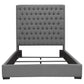 This impressively-styled bed makes a bold yet fashionable statement. It features an imposing, 72" high headboard that's bold. Yet, the headboard comes with button tufted fabric that's stylish and eye-catching. The bed sits on solid wood legs finished in lush cappuccino for a touch of charm. This bed is a graceful addition to the bedroom.