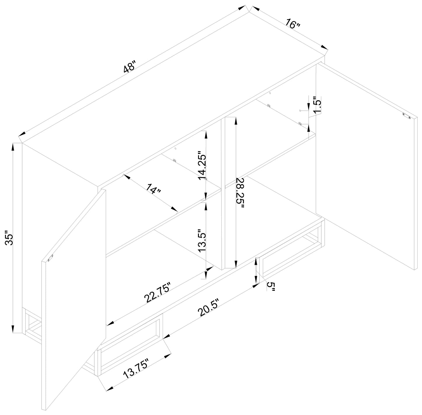 • Double cabinet doors reveal adjustable shelves for versatile storage