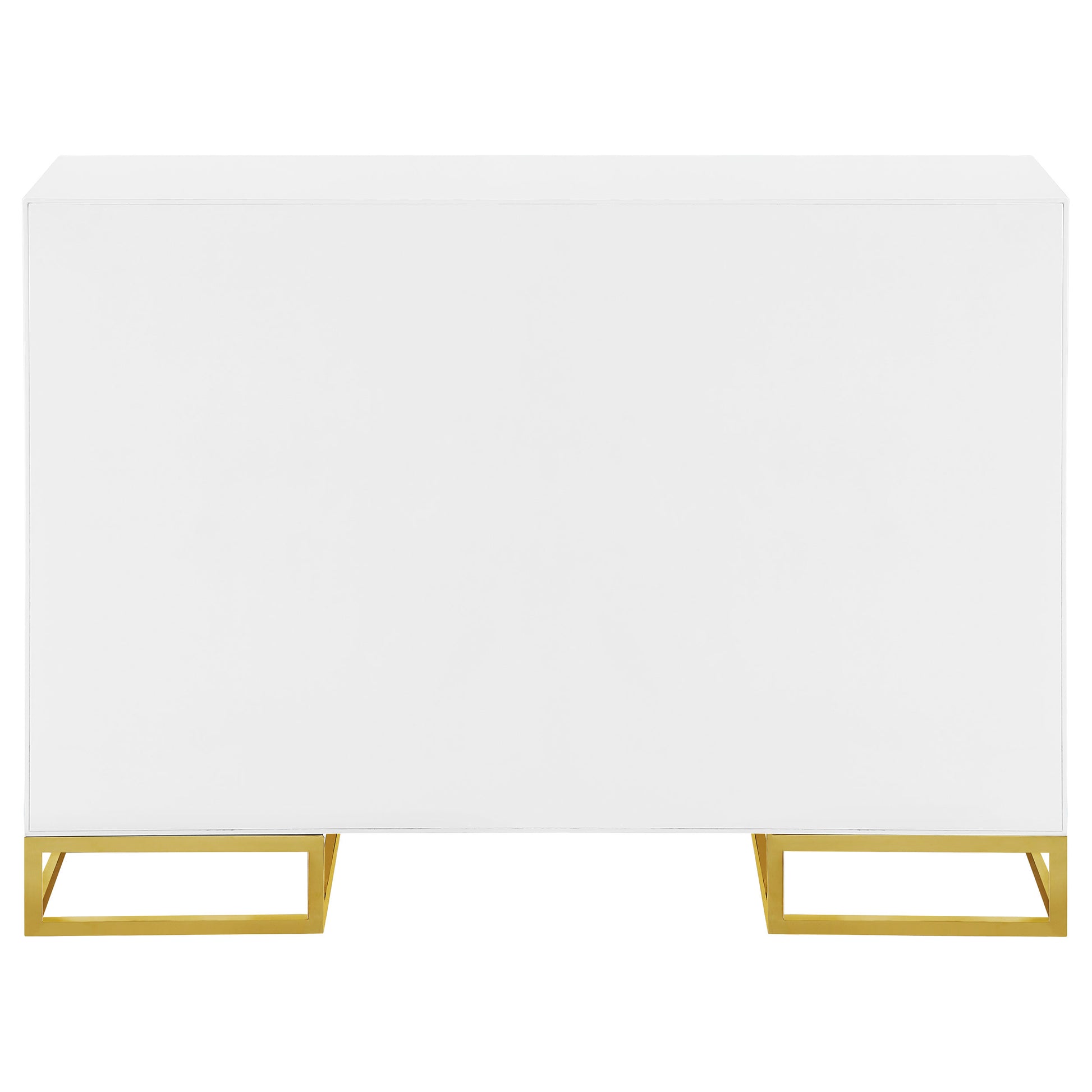 • Sleek accent cabinet with bright white finish and glamorous gold trim