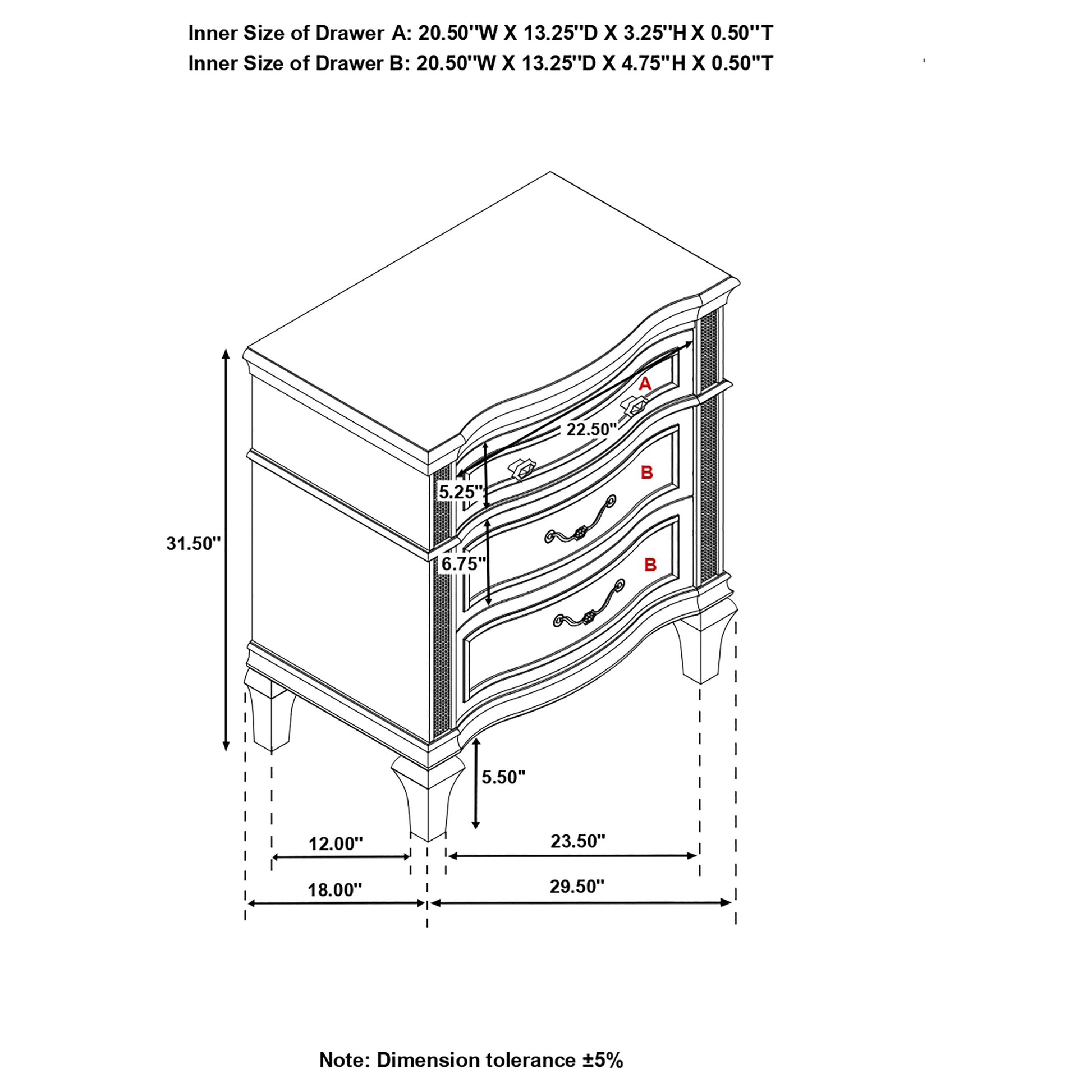 Evangeline 3-drawer Nightstand Silver Oak
