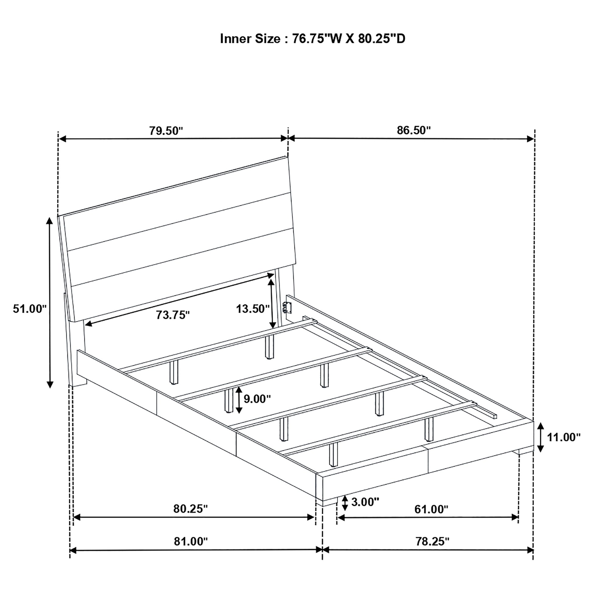 • Bed frame upholstered in smooth, durable, and soft faux leather for comfort