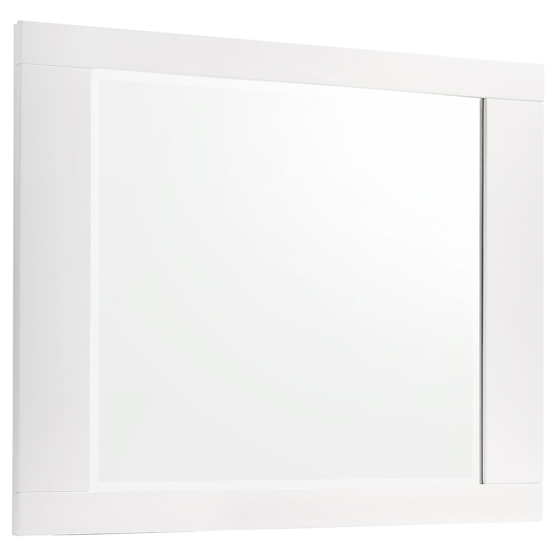 Sleek and contemporary, this four-piece bedroom set exudes modern glamour. Its white, polyurethane coating is pleasingly polished to a gorgeous, glossy finish. The mirror and case pieces are simple and straight. The sturdy bed frame boasts a boldly curved shape. Gleaming, chrome hardware completes its design with even more brilliant shine.