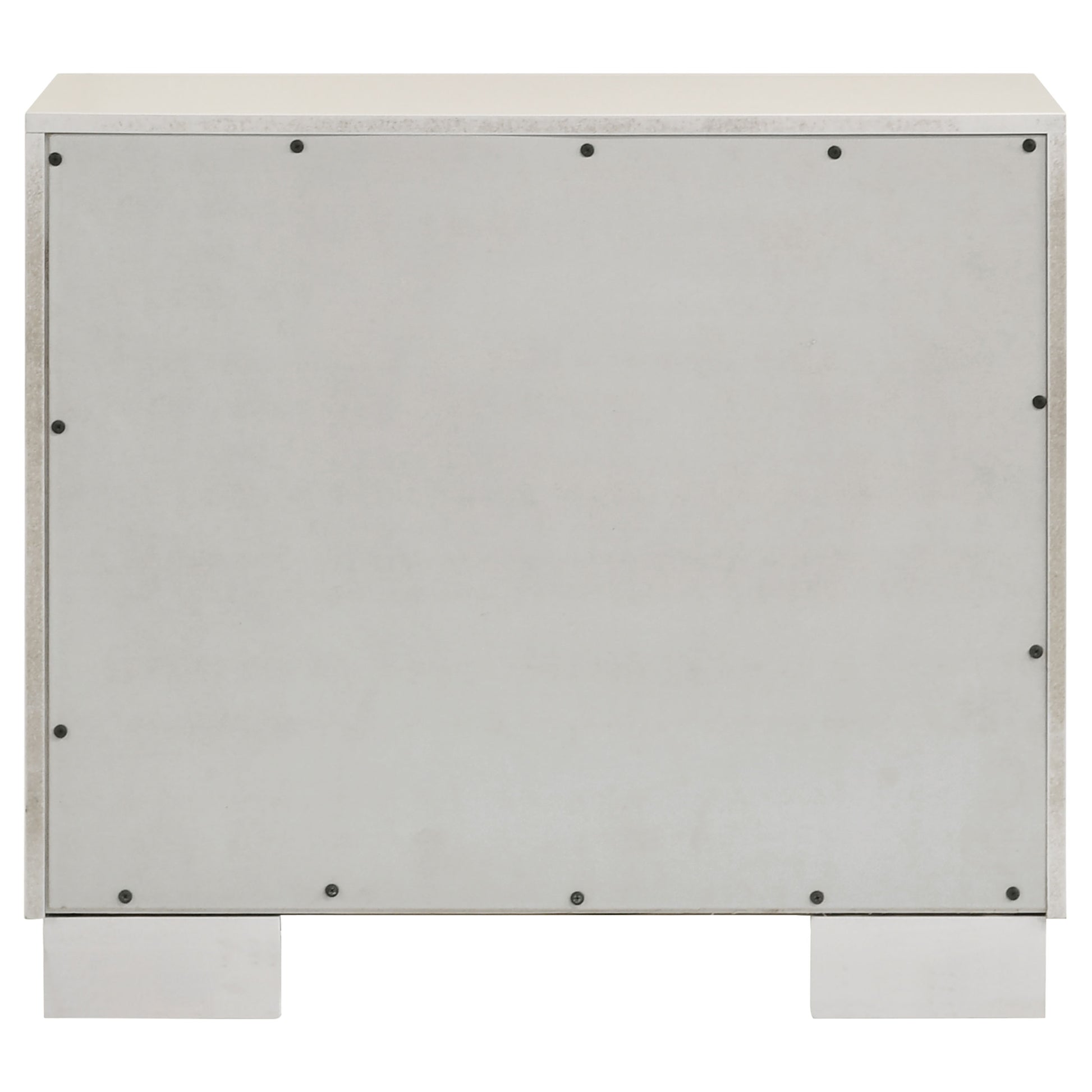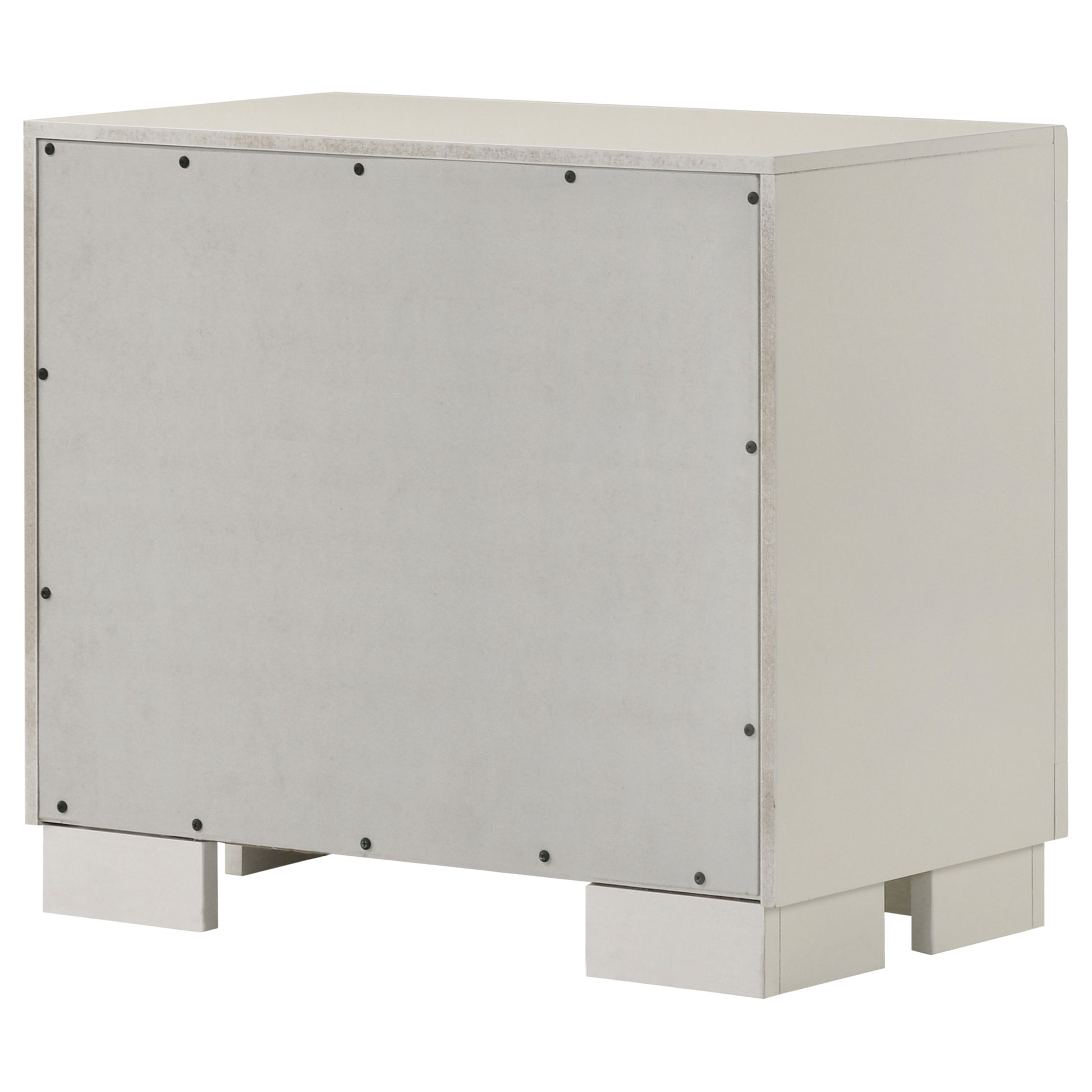 Clean lines and modern simplicity define this two-drawer nightstand, offering both style and practical storage. Each smooth-gliding drawer is felt-lined to protect delicate items, while sleek bar pulls lend a refined, contemporary accent. Constructed from durable wood and engineered materials, its sturdy form ensures everyday reliability. Ideal for bedside use, this nightstand blends functional design with a crisp, minimalist aesthetic that complements any bedroom décor.