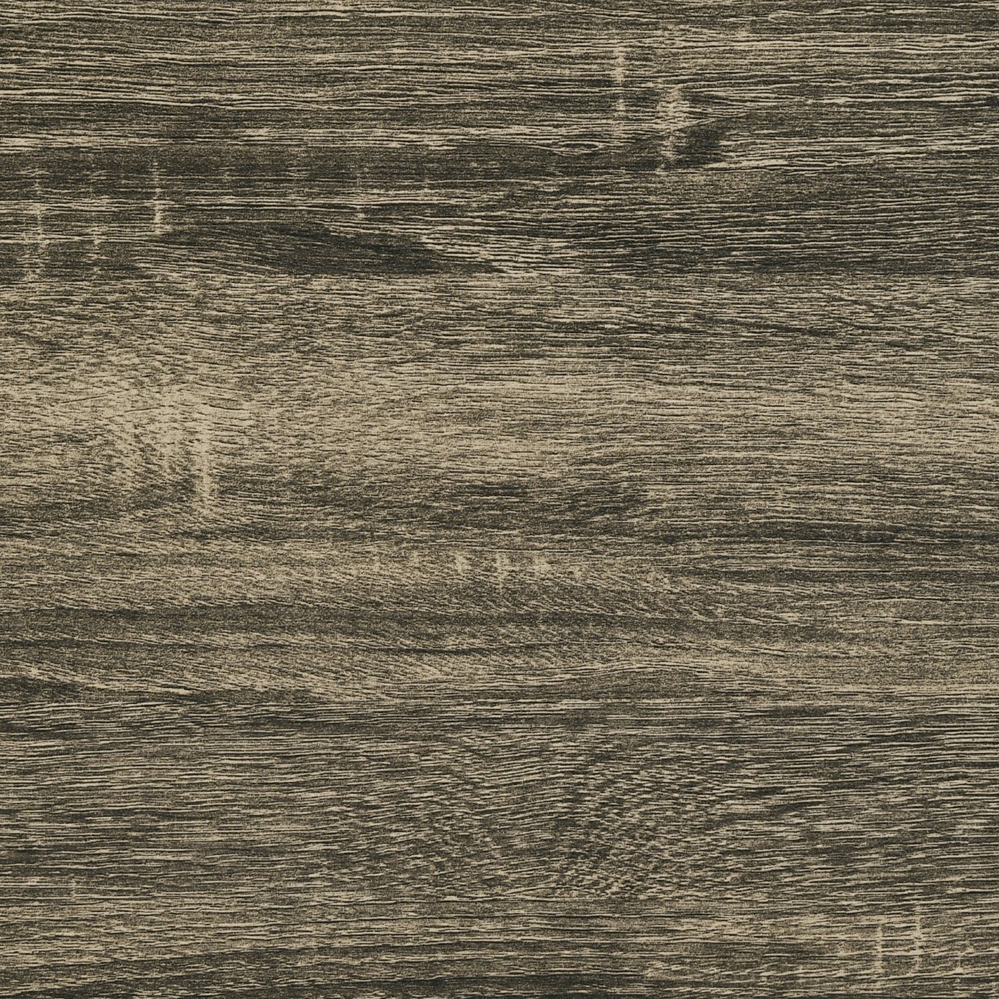 • Washed taupe finish showcases wood grain with black contrast groove accents