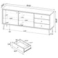 Light, airy energy and minimalist Scandi design combine to create a chic storage solution for any room. A modern accent cabinet features a pine wood finish case that's cool and neutral, perfect for a living or dining room. Door and drawer fronts add a contrasting antique gray finish that's rich and elegant, offering contrasting color and style for a stand-out look. Two doors open to reveal two shelves, great for everything from dinnerware to clothing and accessories. Three drawers create the perfect spot for smaller items, adding organization in an entry or home office.