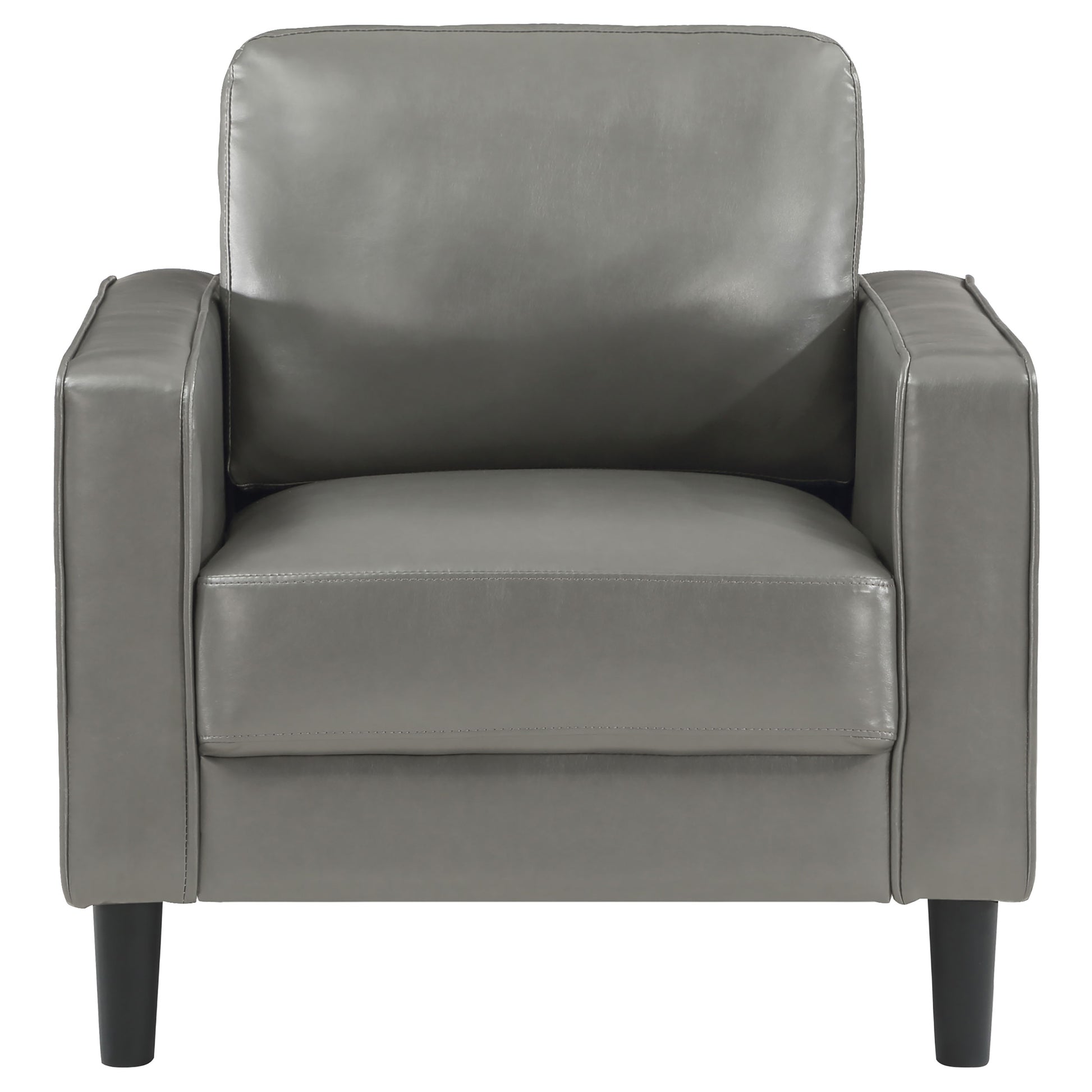 • Grey faux leather upholstery adds a bold, modern touch to any space
